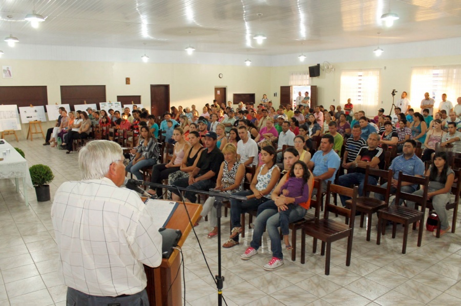 São Bento – Na noite de quarta-feira mais de duzentos moradores do bairro Serra Alta marcaram presença na audiência pública para apresentação do projeto de regularização fundiária que abrangerá as áreas da Vila Schwarz e do Morro da Mariquinha. Realizada no salão da Capela São José, a audiência contou com a presença do prefeito Magno Bollmann; do diretor presidente da Empresa Municipal de Habitação (Emhab), José Henelito Weiss; da presidente da Câmara Municipal, vereadora Nilva Larsen Holz; da secretária executiva da Amunesc, Eleonora Bahr Pessoa; de representantes da Associação de Moradores; da Polícia Militar; do Corpo de Bombeiros; da Defesa Civil; e de diversas secretarias municipais. Antes da apresentação do projeto, Henelito destacou a importância da regularização fundiária – dezenas de famílias serão beneficiadas com uma nova moradia, deixando assim as áreas de risco ou áreas de preservação permanente, que deverão ser desocupadas e recuperadas por orientação do Ministério das Cidades.