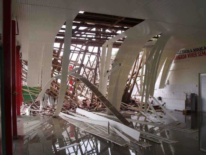Mafra – Parte do teto da escola estadual EEB Monteiro Lobato desabou neste final de semana, conforme informações do blog da própria unidade de ensino (eebmonteirolobato.blogspot.com). As fotos são da página do “RioMafra, Bebê” no Facebook e estão circulando pela rede. No blog da escola, a informação é a seguinte, mantida a grafia original: “É pessoal hoje as notícias não são muito boas, desabou o teto do pátio coberto de nossa querida escola. Mas não se preocupem ninguém se machucou, pois na sexta-feira de manhã quando percebemos que havia algo de errado, a dona Janice já mandou interditar a área coberta, o pessoal da Celesc veio para desligar a luz da ala de baixo foi desligada e na hora do recreio os alunos que já estavam na escola foram encaminhados para a parte de baixo da escola onde não corriam riscos. Também na mesma hora ligamos para o corpo de bombeiros que entrou em contato com a defesa civil,ligamos também para os responsáveis pela SDR e Gerencia Regional para que fossem tomadas as providencias necessárias.Graças ao nosso bom Deus a estrutura caiu no final de semana , quando não havia ninguém na escola e hoje 27/02(segunda-feira)não haverá aula e o engenheiro da SDR esteve aqui analisando a situação para vermos quais providencias iremos tomar.Peço a ajuda de vocês para divulgar aos pais e à comunidade em geral que assim que tivermos uma situação segura para alunos e funcionários anunciaremos no rádio o retorno das aulas”.