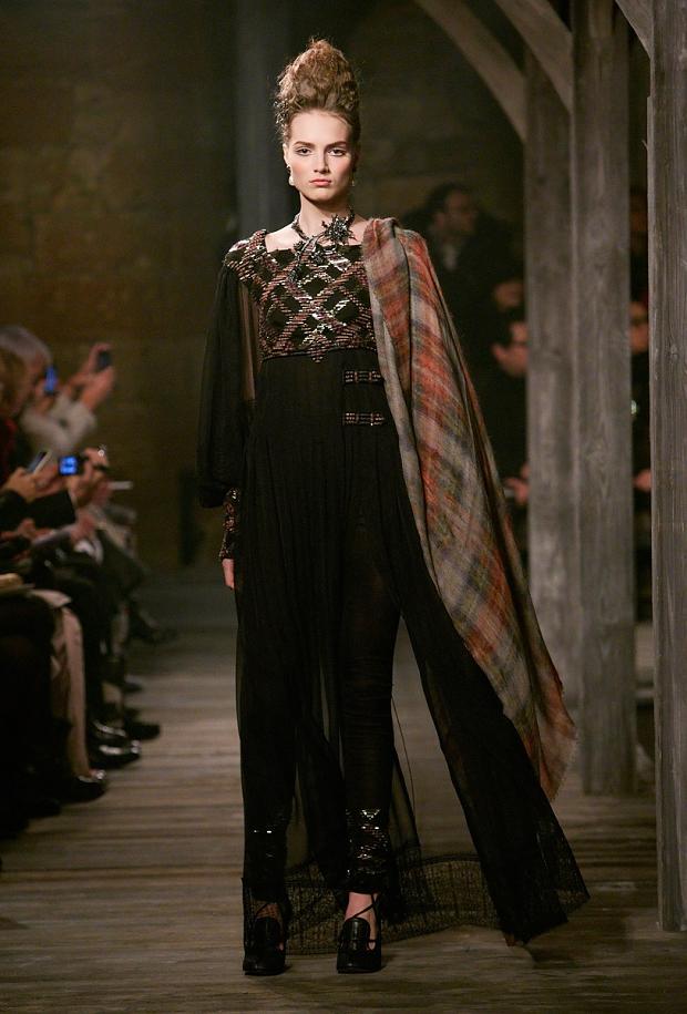 E como tudo que Karl faz, o desfile não poderia deixar de ser um espetáculo : o " setting ", um castelo em ruínas, com um clima meio misterioso e onde nasceu a Rainha Mary da Escócia, com tocadores de gaita de fole recepcionando os convidados que se espalharam no pátio semi descoberto e receberam mantas para se proteger do frio cortante da noite, tudo embalado pelo " live concert " de Jake Bugg .