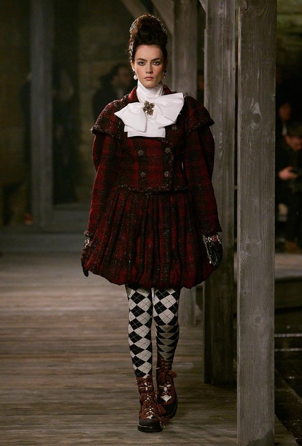Os diversos looks apresentados tinham como referência o local escolhido e não poderiam faltar muitos tweeds, tartans, roupas com uma forte inspiração na época da Rainha Elizabeth.
