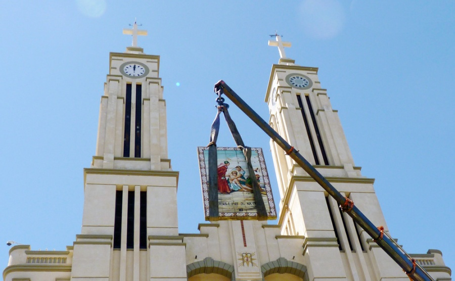 Enquanto José Antonio Benedet e Jocelí Schuls trabalham na preparação das muretas, equipe permanece em Orleans para o término da pintura dos azulejos. Orientados pela restauradora Ana Lúcia Bergamo, sete pessoas trabalham mais de dez horas por dia para concluir a restauração. Devido à umidade, a estrutura em que os azulejos estavam fixos não pôde ser aproveitada. Com a oxidação dos ferros, a equipe optou pela construção de novas bases. Um a um, os azulejos foram retirados, limpos e, após a base concluída, foram recolocados para só então iniciar a pintura. “Os que estavam faltando precisamos comprar e dar sequência no desenho”, disse Benedet. A previsão é que na segunda-feira inicie a colocação dos painéis na escadaria da Igreja Matriz. Com relação à peça que ficou na escadaria, o restaurador explica que ela será restaurada no próprio local, quando a equipe iniciar a colocação. “Até o Natal estará tudo pronto”, disse o restaurador, destacando que após prontos, a comunidade observará que a pintura dos azulejos não será igual.