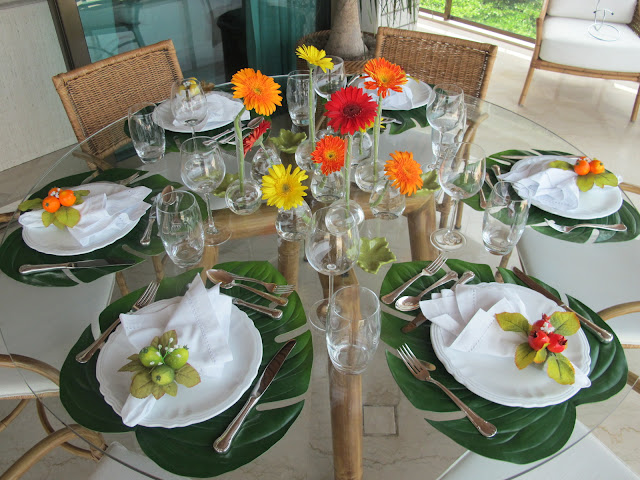 TRÊS PORTA-GUARDANAPOS DIFERENTES, MAS HARMONIOSOS ENTRE SI, PARA DAR COR E COMBINAR COM AS GÉRBERAS