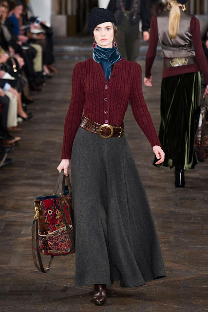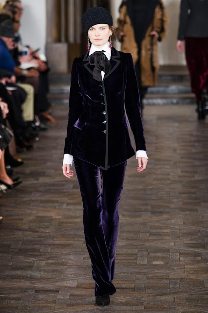 E, como sempre, ele apresentou uma coleção com o DNA da marca, com grande inspiração em motivos equestres e campestres para o dia e na linha noite, modelos luxuosos, a maioria em veludo em " jewel tones".