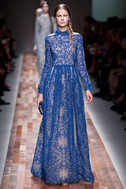 ( pouquíssimos! ) e off-whites, foi uma explosão de AZUL, principalmente o azul - Klein misturado com branco, o que resultou em estampas lindas, que lembravam a porcelana Bleu de Chine.