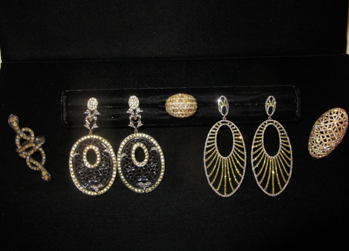 BRINCOS DESLUMBRANTES EM BRILHANTES AMARELOS E NEGROS E MAIS MAXI ANÉIS QUE ESTÃO UM SHOW!