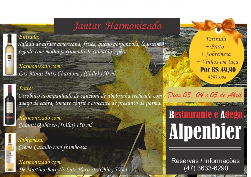 Alpenbier - Jantar Harmonizado dias 3, 4 e 5 de abril