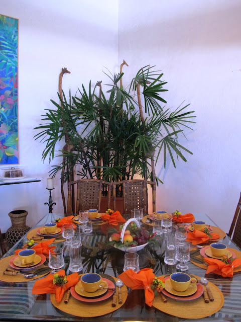 A MESA; NO CAFÉ DA MANHÃ ELA É SEMPRE ARRUMADA DENTRO DE CASA POR CAUSA DO SOL QUE BATE NAS MESAS DO JARDIM
