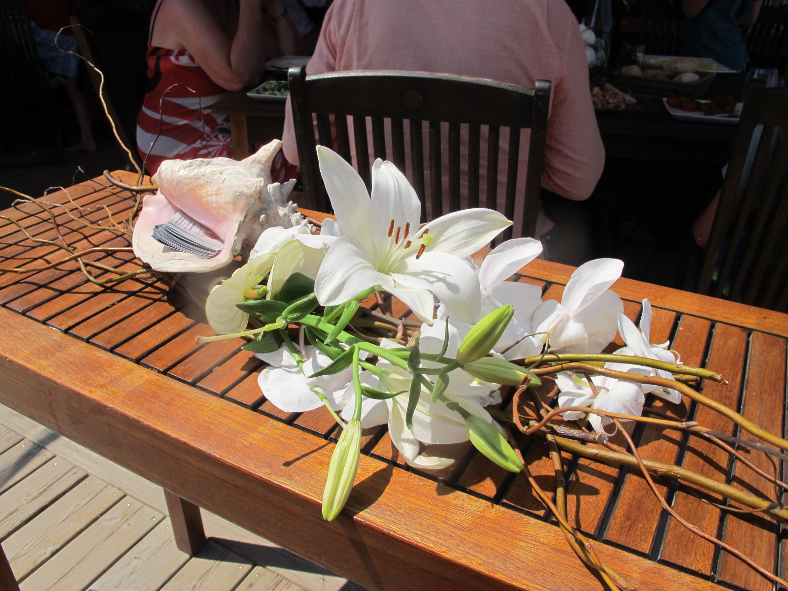 RAMO DE LÍRIOS EM UM APARADOR