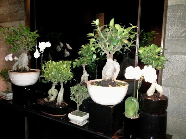COMPOSIÇÃO LINDA COM BONSAIS E ORQUÍDEAS
