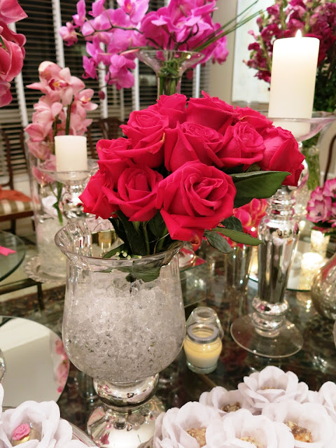 A MESA TODA EM TONS DE PINK, VERMELHO E BRANCO