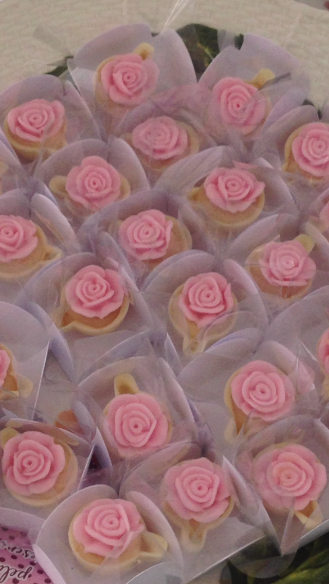 Os cupcakes foram todos "home made", acreditem se quiser, e as flores, super próprias e combinando com o decor, foram arrumadas na Chácara Tropical, que não só vende como também faz arranjos lindos,