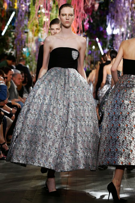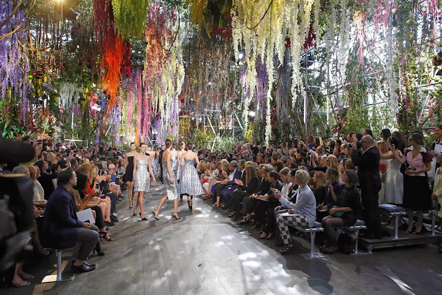 RAF SIMONS, diretor criativo da marca, montou um jardim tropical em cores néon para apresentar seus looks para a Primavera / Verão 2014.
