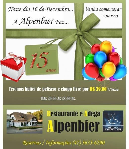 Venha comemorar conosco os 15 anos da Alpenbier é hoje