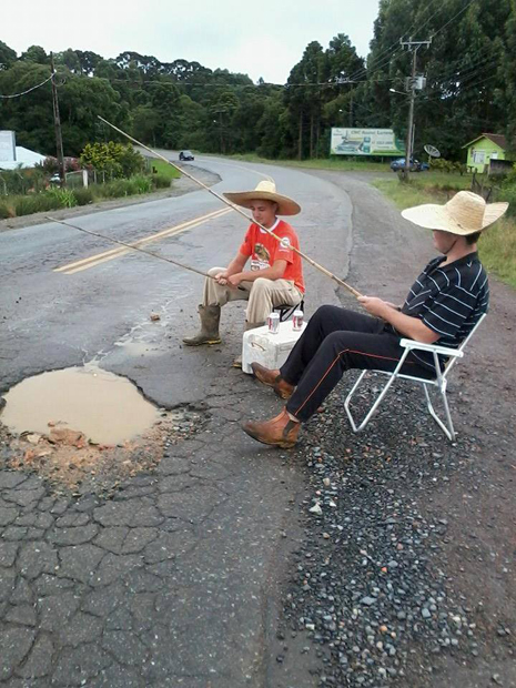 O morador de Distrito de Fragosos, Jorge Miguel Zoellner, de 21 anos, encontrou uma forma irônica de protestar contra os problemas da rodovia. Uma foto dele e do primo, Josias Radol, pescando em um dos buracos chamou a atenção nas redes sociais e recebeu vários compartilhamentos pela internet.