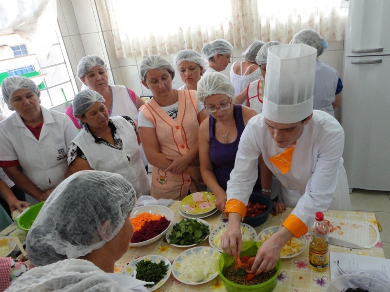 Sob a supervisão do Chefe de Cozinha do Senac, Rafael Beuther, as cozinheiras das escolas municipais puderam aprender novas técnicas para incrementar na qualidade da alimentação. “Buscamos inicialmente aprimorar técnicas que ajudem no dia a dia da merenda. São pequenos detalhes que as vezes elas desconhecem, mas que fazem toda a diferença”, avalia o chefe.