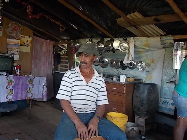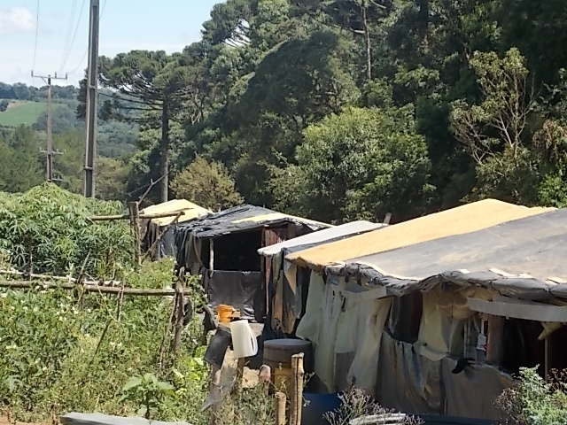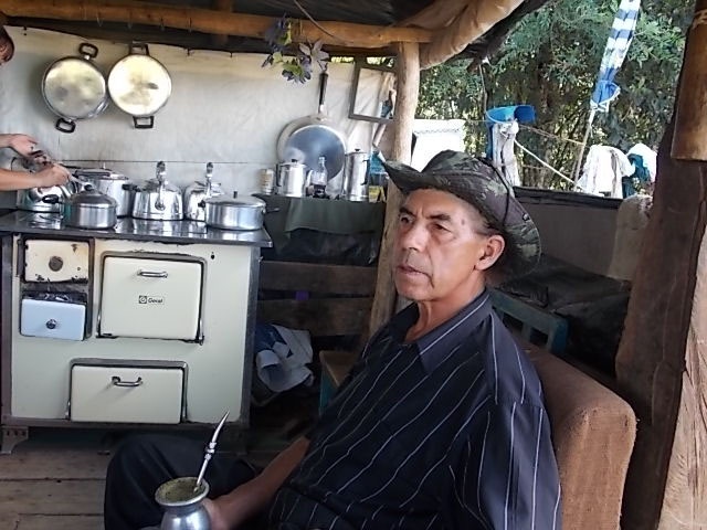 Fomos recebidos com toda fidalguia das grandes hostess. Nem um pano vermelho, nenhum vestígio de arma, apenas brinquedos espalhados pelo chão, da humilde moradia coberta de lona preta e assoalho de tábua bruta. Seis crianças, gêmeas de colo (6 meses) e mais quatro brincando, no que é cozinha, sala de visita, refeições e com certeza a noite também dorme alguém, separado de outra peça apenas por uma cortina. Além da hospitalidade, do convite para entrar e sentar, do chimarrão, detalhes que chamaram a atenção. Na porta todos os chinelos que são usados pelas crianças. No fogão de lenha três chaleiras brilhando mais que espelhos. Nas paredes reluziam as panelas e tampas igualmente polidas. Alguém foi chamar o líder do acampamento que logo chegou acompanhado por um vizinho, e que foram logo dizendo: as crianças para fora que agora teremos conversa de adultos. Não se ouviu nenhum reclame e nem barulho. Todos saíram para o pequeno quintal e se puseram a brincar.