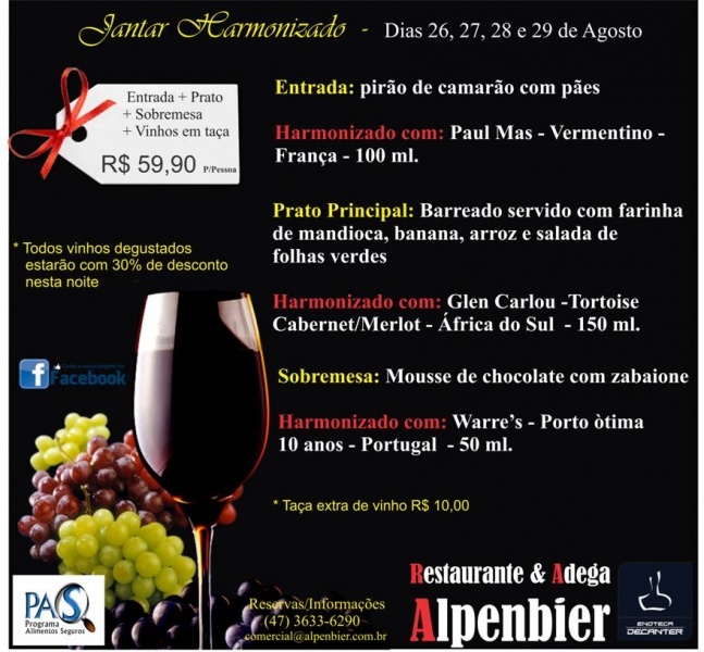 Alpenbier - Jantar Harmonizado dias 26, 27, 28 e 29 de agosto