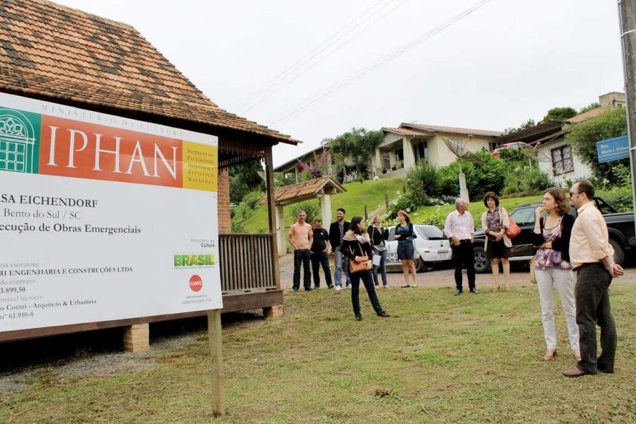 São Bento - Durante passagem por São Bento do Sul, na manhã de ontem, quinta-feira 11, a presidente Nacional do Instituto do Patrimônio Histórico e Artístico Nacional, Iphan, Jurema Machado, visitou a Casa Eichendorf. O imóvel tombado pelo Patrimônio Histórico Nacional integra os Roteiros Nacionais da Imigração do Iphan. Além dela, o Diretor do PAC Cidades Históricas, Robson Antônio de Almeida, e a Superintendente do Iphan em Santa Catarina, Liliane Janine Nizzola acompanharam a visita.