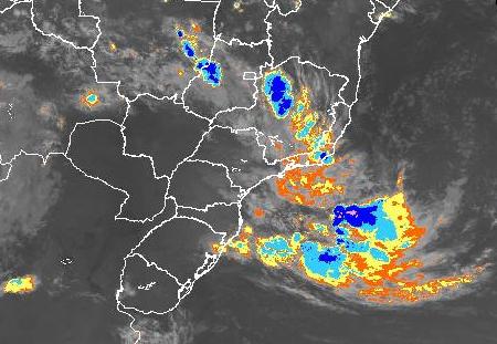 Imagem de satélite mostra grande quantidade de nuvens no mar devido ao ciclone subtropical.