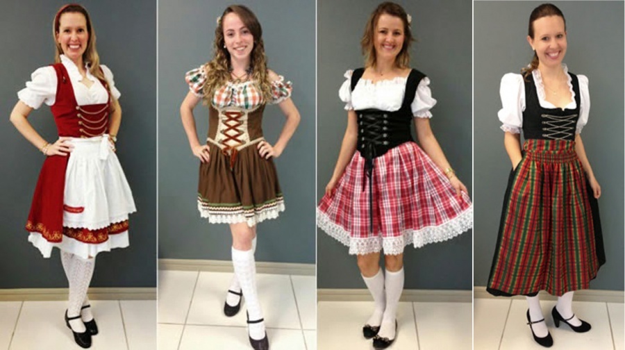 Para as mulheres, vestidos típicos com detalhes em rendas e bordados, ou saia e blusa com mangas bufantes e colete. Os trajes devem ser longos, até a altura do joelho ou até 4 dedos acima dele. As blusas devem ser de tecido e em tons claros. Podem ser usados sapatos, sandálias e sapatilhas. A tiara e o avental são opcionais.