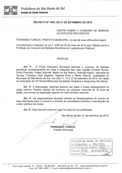 Esclareço também que o executivo municipal emitiu o decreto nº 1065/2015 regulamentando o consumo de bebida alcoólica nas vias públicas durante o desfile.