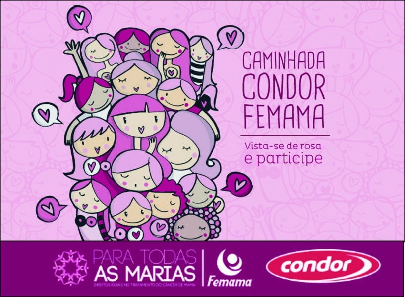 Paralelamente à Caminhada, a Condor também contribui com o movimento através de uma linha de produtos exclusiva, criada pelo artista plástico catarinense Luciano Martins. Os traços fazem alusão à campanha “Para todas as Marias. Direitos iguais no tratamento do câncer” da Femama – Federação Brasileira de Instituições Filantrópicas de Apoio à Saúde da Mama. Parte das vendas dos itens de higiene, beleza e limpeza será repassada à instituição, que luta por tratamento igualitário a todas as mulheres.