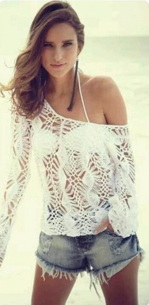 As blusas em crochê não poderão faltar pois dão um charme a mais, mesmo usando aquele shorts jeans.