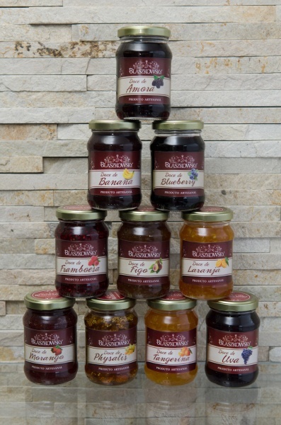Com a família Blaszkowsky que ousou por seu nome nos produtos que fabrica, não foi diferente. O gosto pelo cultivo e pelo aproveitamento dos frutos colhidos foi o início de tudo, conta o filho Johnny, 30 anos, formado em administração, que deixou um emprego fixo para junto com os pais ampliar o negócio. Tudo começou meio na brincadeira com Carin, a mãe que pegou as receitas dos antepassados e foi para o fogão transformar frutas em geléias e doces. Ela conta entre gostosas risadas que tudo começou com a bisavó, avó e as tias e que foi aperfeiçoando. O doce delas era bom mas não tinha segredos. Fui olhando e copiando como elas faziam. Algum diferencial elas tinham pois os doces eram muito bons. Copiei os pequenos detalhes que para elas eram insignificantes e que justamente fazia o gosto bom. Aí fui trazendo para os meus, fui adaptando, pondo a minha colher para mexer e fazendo o meu diferencial. A vontade desde o início era colocar qualidade no que produzimos.