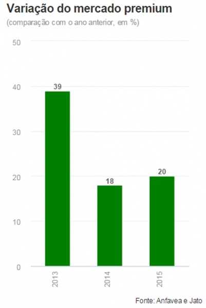 Embora 2015 tenha sido marcado por uma das mais profundas crises da história da indústria automotiva brasileira, as marcas premium, que vendem apenas carros acima de R$ 100 mil, continuaram distantes da realidade de queda nas vendas do mercado como um todo pelo 3º ano consecutivo.
