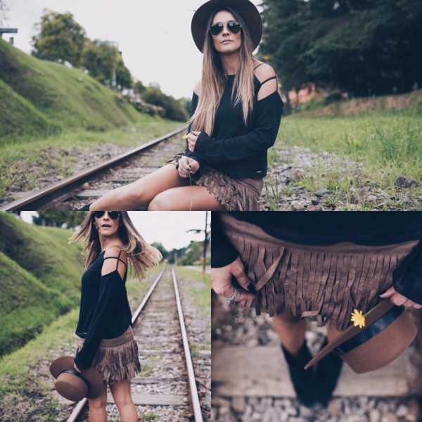 Franjas: sim, elas continuam! Fato é que as franjas continuam com tudo, pois a moda que se inspira nos anos 70 pede franja: nas roupas, nos acessórios, nas bolsas, nos calçados. Você pode vê-las nas saias, blusas, coletes, kimonos, vestidos, t-shirts.