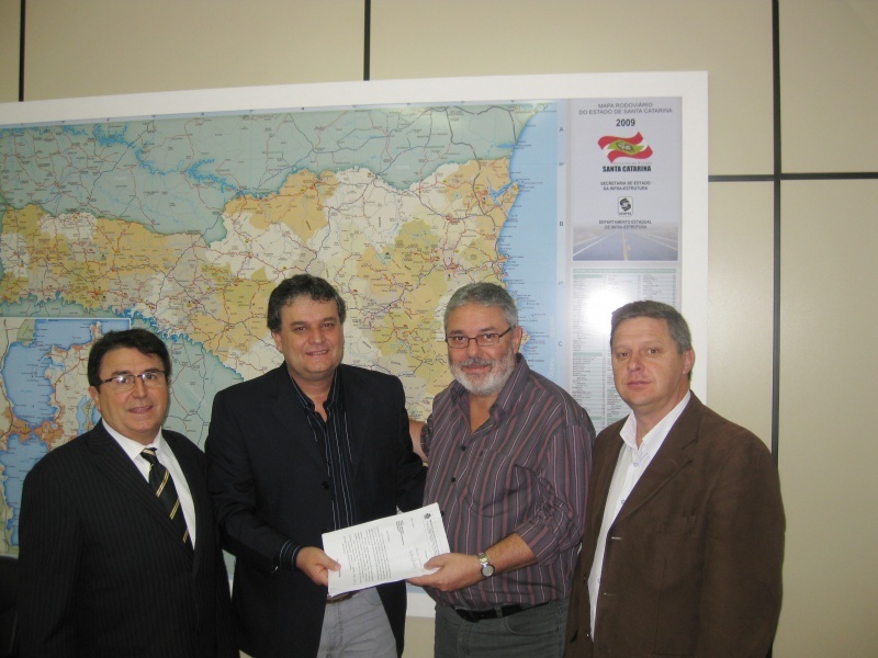 Canoinhas - A prioridade para liberação de recursos do convênio com a prefeitura de Canoinhas, para reurbanização da rodovia Wendelim Metzger, com pavimentação da ciclovia até o distrito de Marcílio Dias, está assegurada pela Secretaria de Infraestrutura. A comunicação foi feita na manhã desta terça-feira (19) pelo diretor geral Paulo França, em audiência com o deputado Antonio Aguiar (PMDB), o prefeito em exercício Luiz Alberto Faria (PMDB) e o secretário regional de Canoinhas, Argos Burgardt.