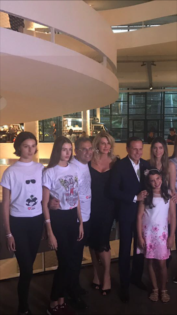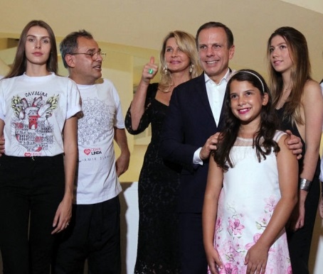Alice França (Mega Model Camboriú), Joana Purin (Mega Model Camboriú); o organizador do SPFW, Paulo Borges; prefeito de SP, João Doria, acompanhado da Mulher Bia e filha Carol