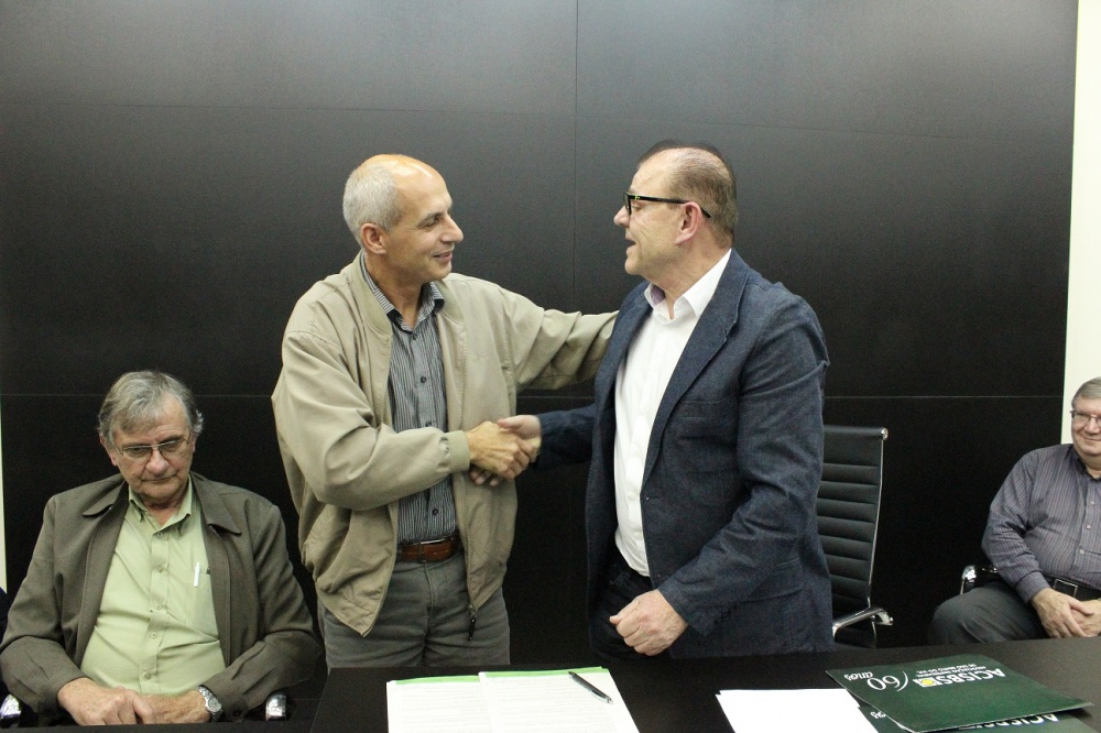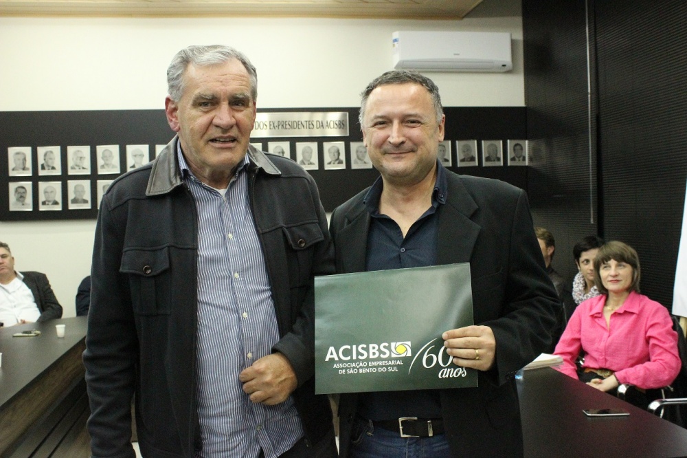 Univille - o diretor do campus da Univille de São Bento do Sul, Gean Cardoso de Medeiros, também participou do encontro. Ele falou da instituição e um convênio de parceria para realização de cursos de pós-graduação foi assinado. Gean iniciou a explanação contando que neste ano, o campus completa 34 anos de atuação no município e região. “Uma das entidades que mais lutou para a vinda foi a Acisbs” relembra. Na época, segundo o diretor, a Univille era a única a oferecer ensino superior. “Hoje devem existir entre 17 ou 18 unidades educacionais de ensino superior”. Medeiros ainda comenta que a Univille é uma universidade comunitária.