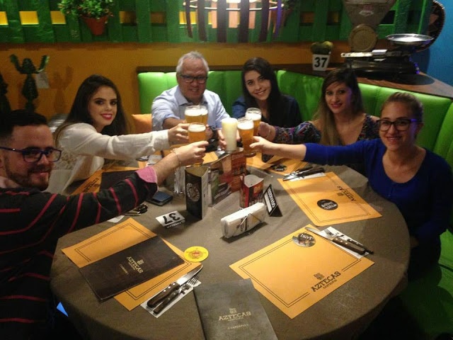 Suzan , que completou aniversário comemorado no Aztecas, sendo brindada por Pedro Motta e amigos