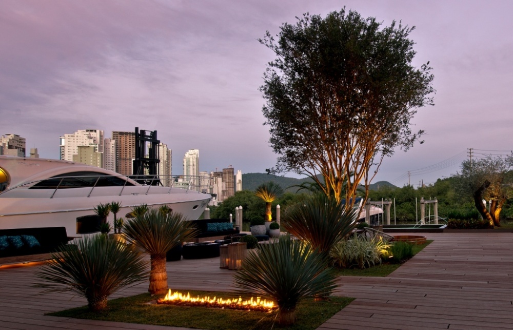 Um dos ambientes que mais reflete esse mundo náutico é o Píer Seventeen, com 400 m2, dos profissionais Indiara Daros e Bruno Barbieri, da injy ID. É inspirado em espaços americanos e europeus, pontos de referência das cidades litorâneas com ambientes de lazer e paisagismo para contemplação. O Seventeen faz alusão ao ano de 2017, em que ocorre a primeira CASACOR em Balneário Camboriú.