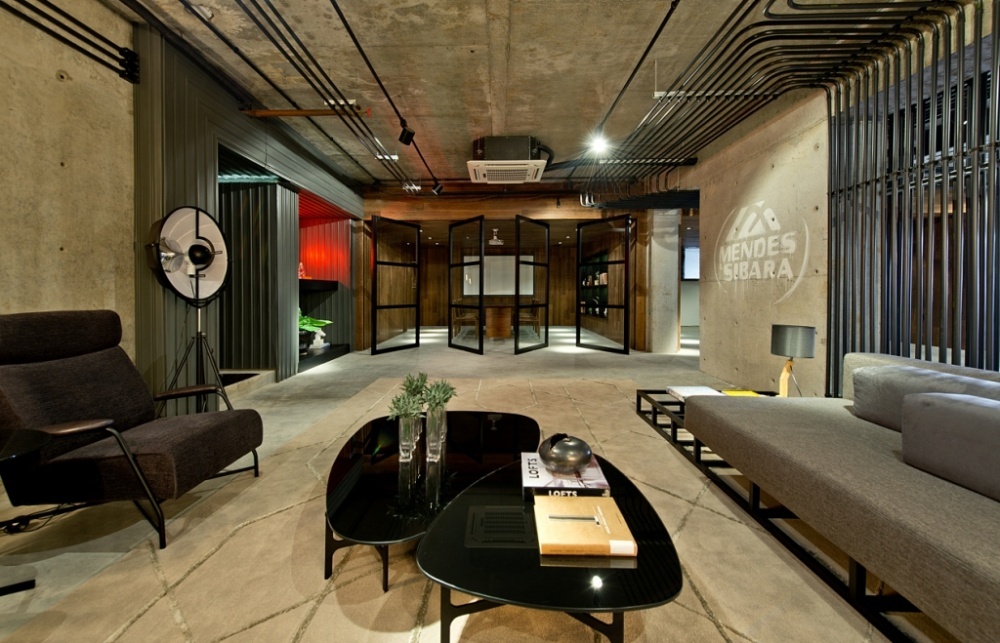 O Espaço Mendes, dos arquitetos Nicholas Alencar + Fernanda Rabello está próximo à marina, com 180m². O trabalho tem estilo industrial e contemporâneo, tubulações aparentes, mas também peças assinadas e telas importantes. Essa tubulação foi o ponto de partida do projeto, pois cria a interação com os espaços. Um ambiente apropriado para negócios, reuniões e também para confraternizar.