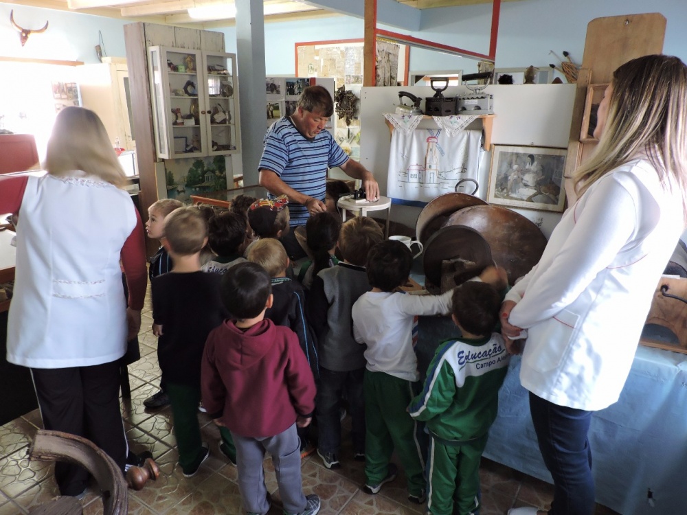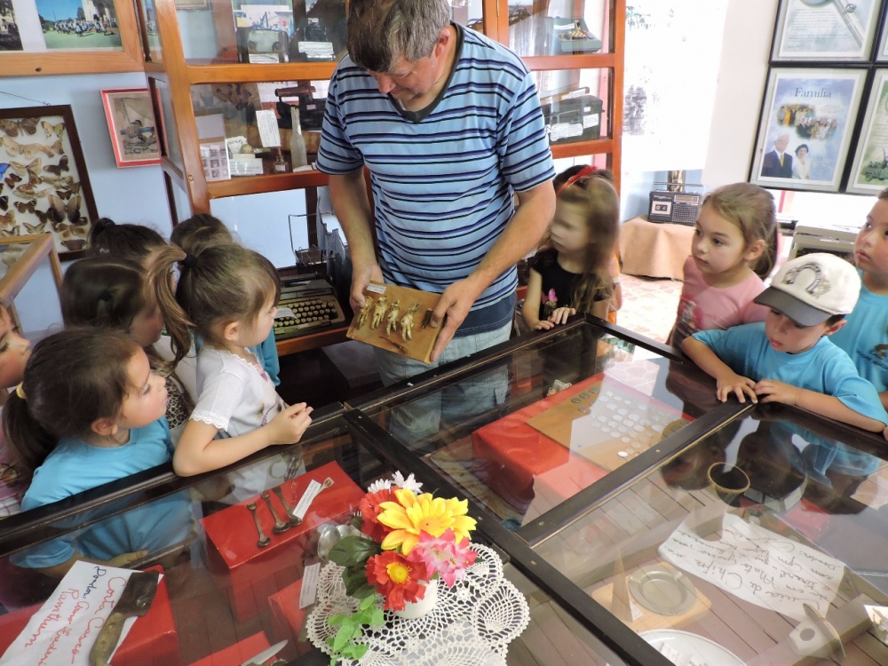 Objetivo da visita foi ampliar o conhecimento e apresentar um pouco da história de nosso município, sendo que durante o mês de maio é comemorada a Semana Nacional dos Museus entre os dias 15 a 21. Alunos entre 04 e 05 anos das turmas do PRÉ I matutino e vespertino foram conduzidas pelas professoras Silvana Cordeiro da Cruz de Freitas e Rosmari de Oliveira. A visita foi guiada pelo escritor e historiador Marcio Augustin.