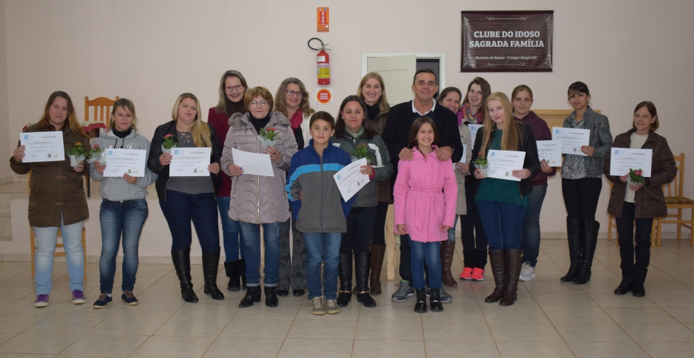 Na ocasião, 15 mulheres ganharam de forma gratuita, a oportunidade de uma nova profissão. A entrega dos certificados ocorreu na sede do Clube do Idoso, com a presença do Prefeito Municipal Rubens Blaszkowski, Secretária da Assistencia Social Marcia Friedrich e ministrante Eliara Schadeck.