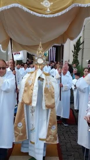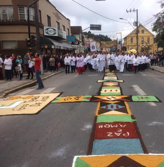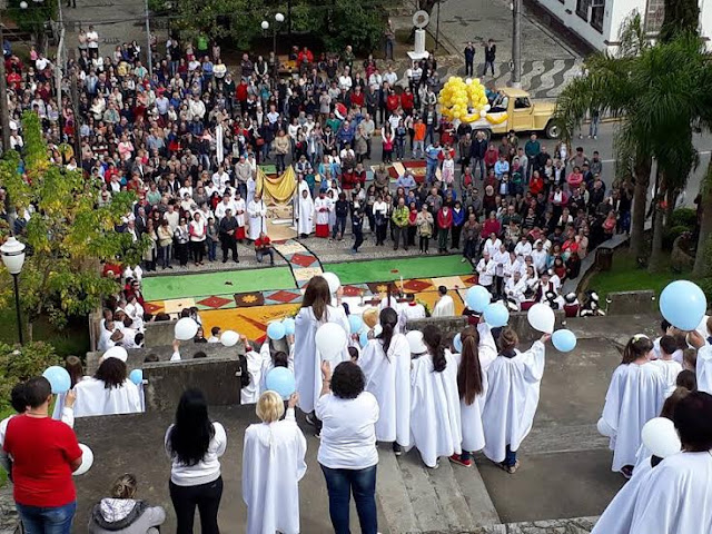 Imagens belíssimas retratam a fé demonstrada pelos fiéis católicos na celebração de Corpus Crhisti na procissão realizada na última quinta-feira, 15. Milhares foram as ruas enfeitadas com tapetes coloridos confeccionados pelas pastorais, paróquias, clubes de serviço, escolas e voluntários. Padre Tito conseguiu resgatar a tradição de muitos anos com a volta da banda Treml participando dos atos religiosos.