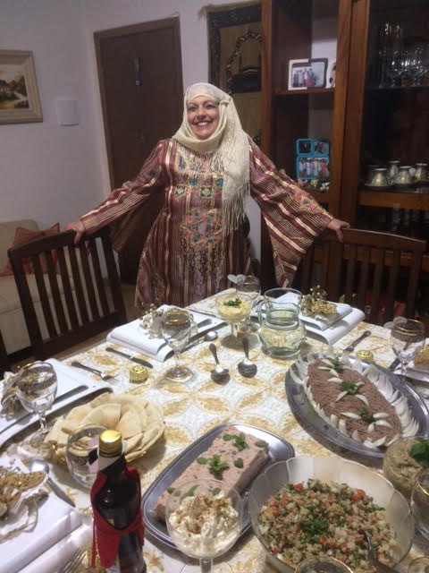 Com ingredientes como simpatia, aconchego e bem receber, Denise Sarkis Issa, ao lado do filho Pedro nos ofereceu e a outros convidados, jantar Árabe com a mais variada e farta mesa toda preparada por ela. Um requinte com paladar, incluindo trajes e como boa anfitriã, como lembrança para as mulheres pequenos porta jóias dourados recheados com damasco e pastilhas de chocolate. Significativo e agradável.