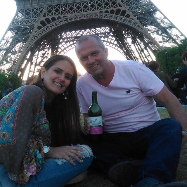 Ale Lobo, colunista joinvilense e Juliano Souza de Liz curtindo o romantismo de Paris com uma bela moldura