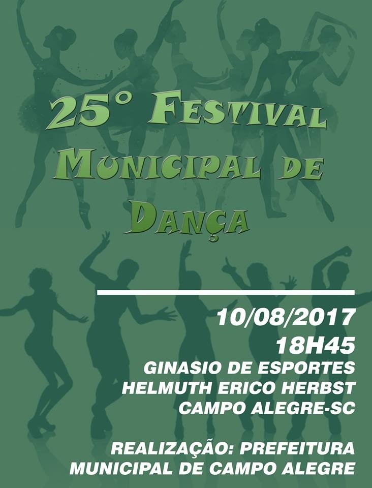 Incentivar e promover a cultura através da dança é o objetivo do 25° Festival Municipal de Dança de Campo Alegre, que será realizado na noite da próxima quinta-feira (10) no ginásio de esportes municipal, com inicio as 18:45h.