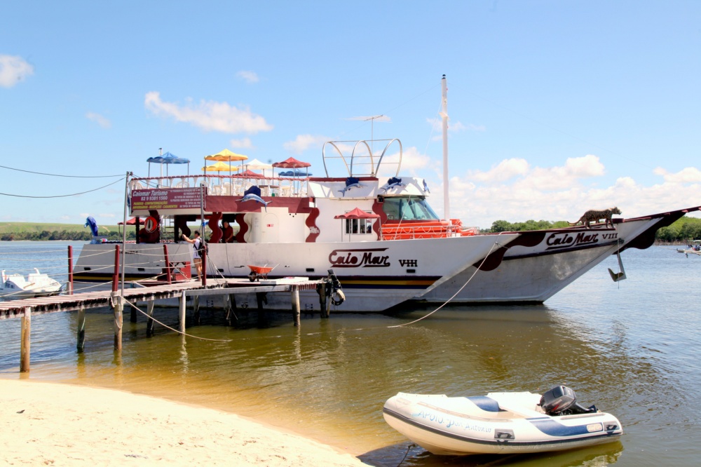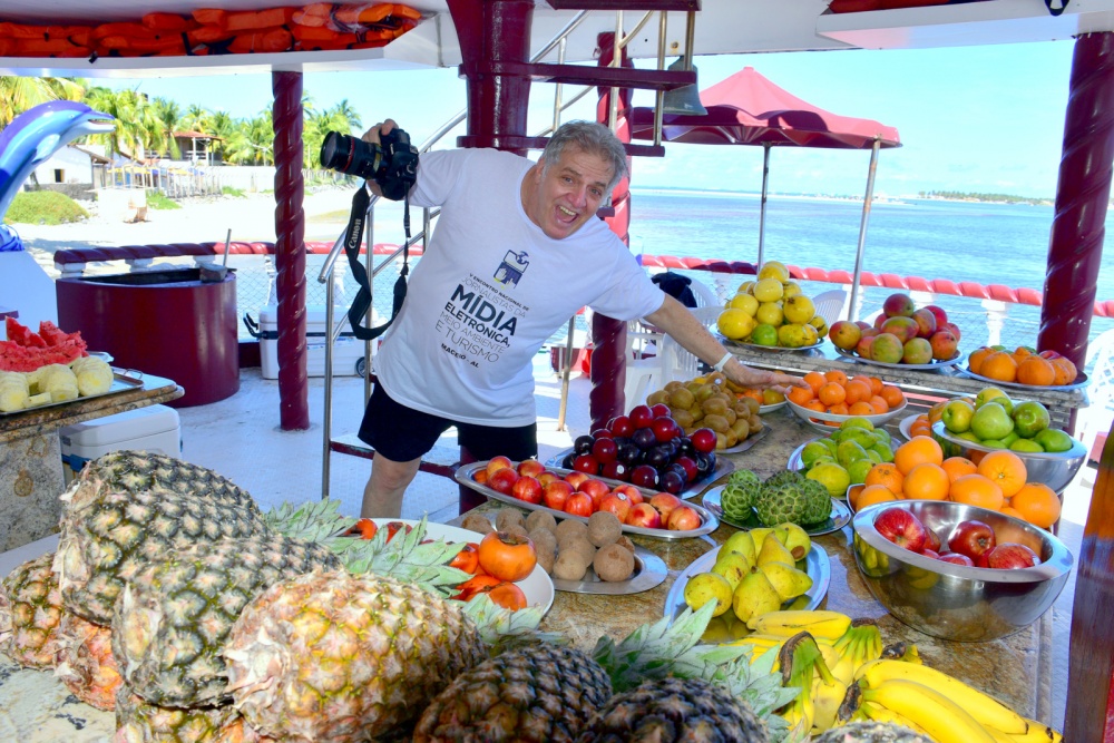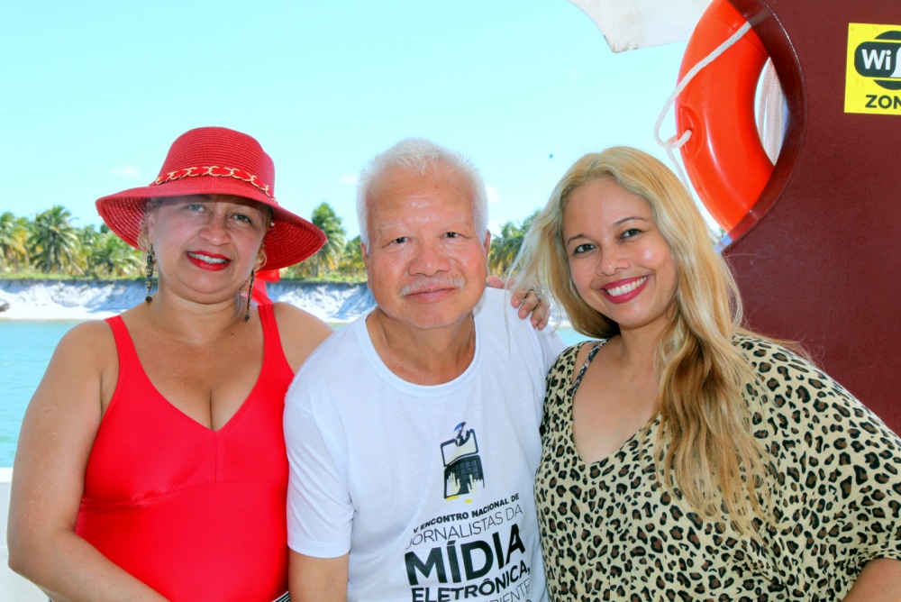 No barco Caio Mar na praia do Gunga a colunista e jornalista de São Luiz (Maranhão)Wilma Vicky França e Sun Sun colunista e jornalista de Salvador (Bahia) com sua filha, Yin Yee Carneiro