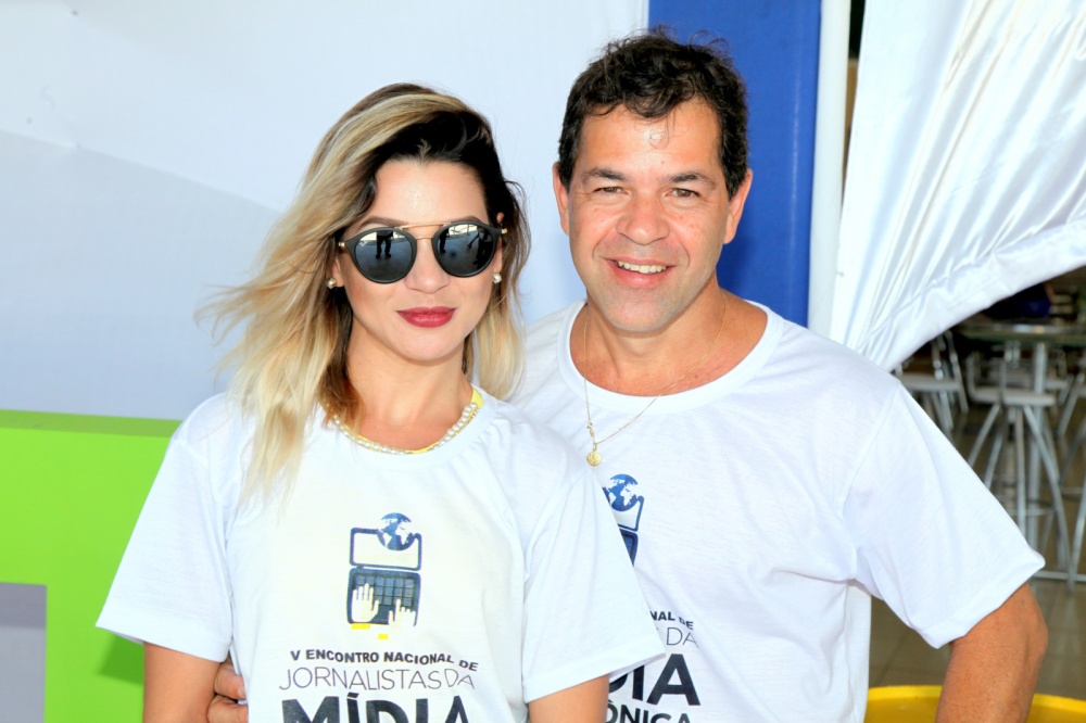 O multimídia da Top, de Catanduva(SP), Pulinho Bauab e a jornalista de Palmas (TO),Jornal Stylo,Fátima Fernandes acompanhada de Hercules Dias, da Gazeta de Goiás (Goiana)