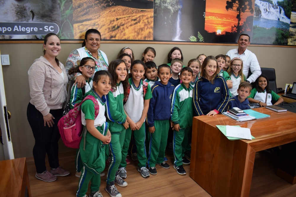 Na tarde de hoje (14), o prefeito Rubens Blaszkowski, recebeu em seu gabinete a turminha do 3° ano da Escola Municipal de Ensino Fundamental Professor Jerônimo Francisco Coelho Pacheco, de Fragosos. O objetivo da visita, segundo a professora acompanhante, Alcioli Rodrigues, foi conhecer um pouco sobre a prefeitura. Os alunos puderam conversar com o prefeito e conhecer um pouco do seu trabalho.