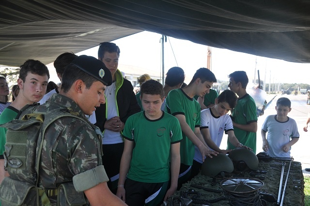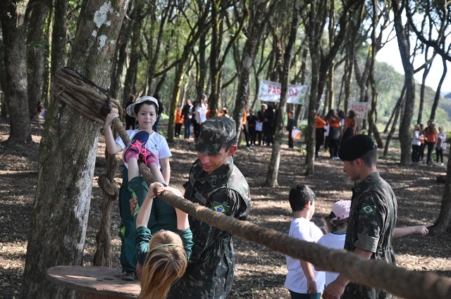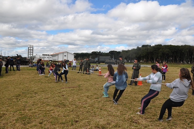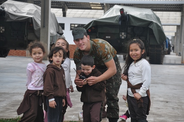 Os alunos tiveram a oportunidade de conhecer a rotina do aquartelamento, as novas instalações, e participaram de atividades lúdicas como uma pista de orientação, pista de cordas, uma oficina de camuflagem e ao final um lanche para as crianças.
