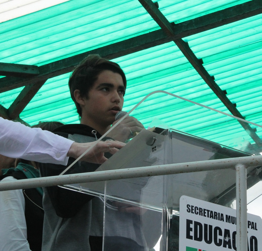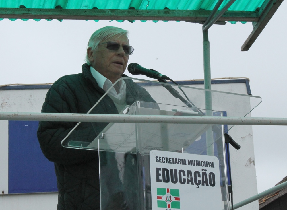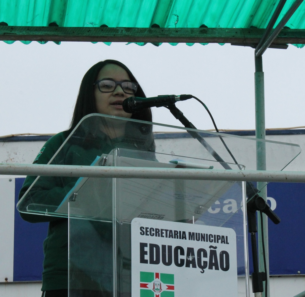 Durante os desfiles cívicos, um aluno da comunidade foi convidado, em nome dos estudantes, para pronunciamento.