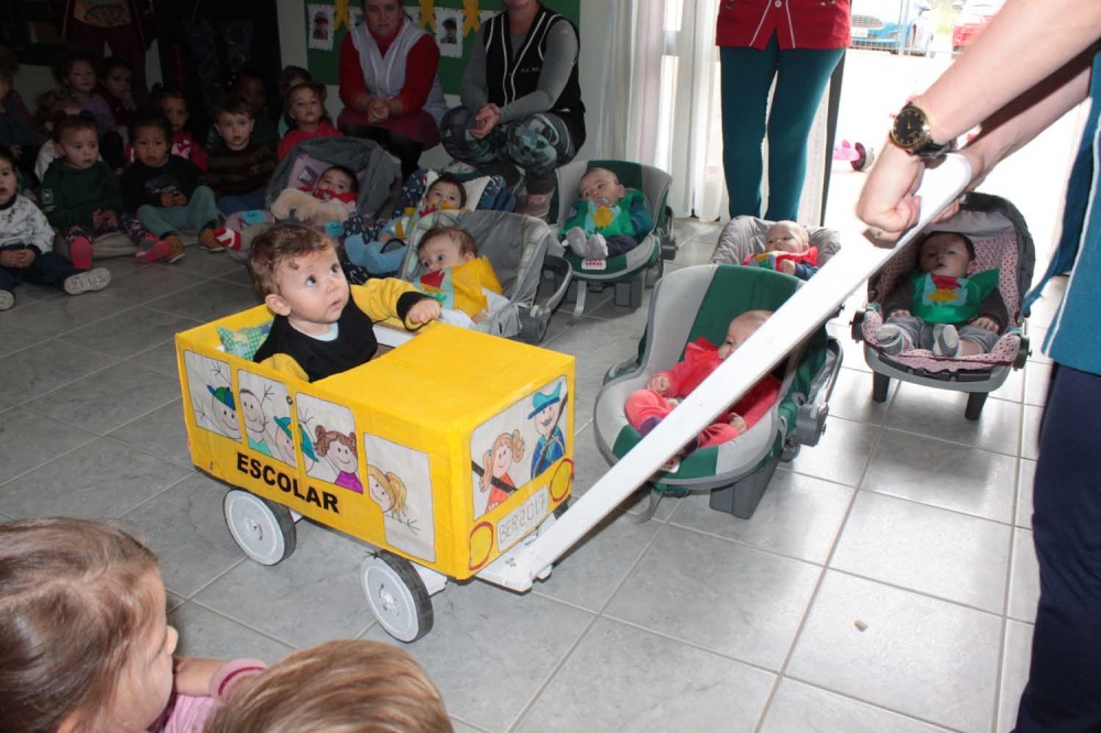 Atividades de abertura - E iniciando a programação, as professoras do CEIM Peter Pan realizaram com os alunos a dramatização da música "Farolzinho e semáforo" e a apresentação da dança "Roda do ônibus". Na ocasião, até os bebês participaram das apresentações.