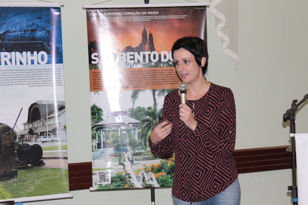 A diretora de turismo de São Bento do Sul, Luiza da Silva, ministrou uma palestra aos presentes onde abordou temas como função da Secretaria Municipal de Turismo, parcerias para o fortalecimento do turismo e o potencial que a nossa região possui.