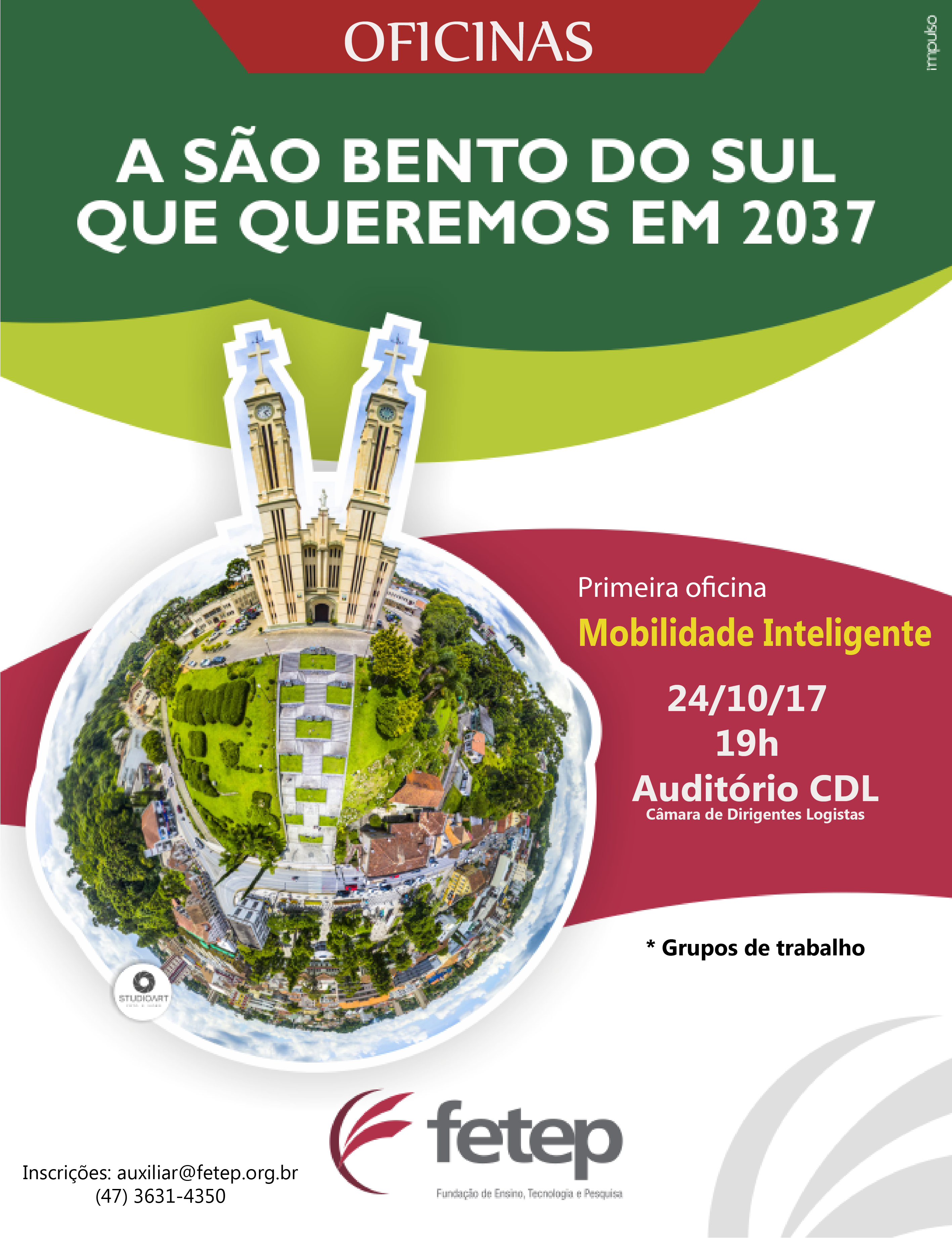 Você é nosso convidado, para participar da segunda etapa da 1ª Oficina " A São Bento do Sul que queremos em 2037" , com a formação de grupos de trabalho para discutir o tema " Mobilidade Inteligente".